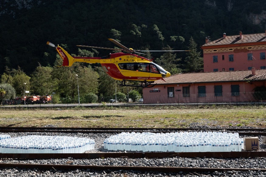 Ces livraisons ont été effectuées au point de collecte situé à la gare de Breil-sur-Roya afin d’être ensuite acheminées par hélicoptères vers les villages sinistrés.