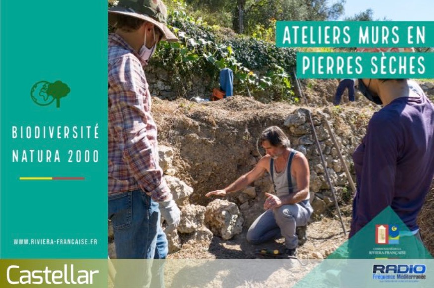 La construction et la restauration des murs en pierres sèches sont un savoir-faire que la Communauté de la Riviera française entend bien transmettre tant ils sont de véritables habitats anthropiques pour de multiples espèces endémiques et patrimoniales. Avec un peu de patience, vous pourrez peut-être apercevoir le spélerpès de strinatii, le lézard des murailles ou encore la nivéole de Nice qui sont des espèces inscrites et protégées par la Directive Habitat Européenne qui régit les sites Natura 2000.
