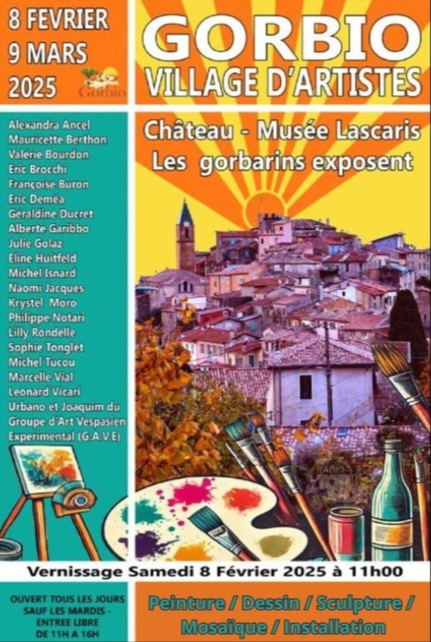 Les artistes gorbarins exposent peinture, dessin, sculpture dans le cadre féerique du Château-Musée Lascaris, vernissage samedi 8 février à 11h, place d'a Moua, devant le château.