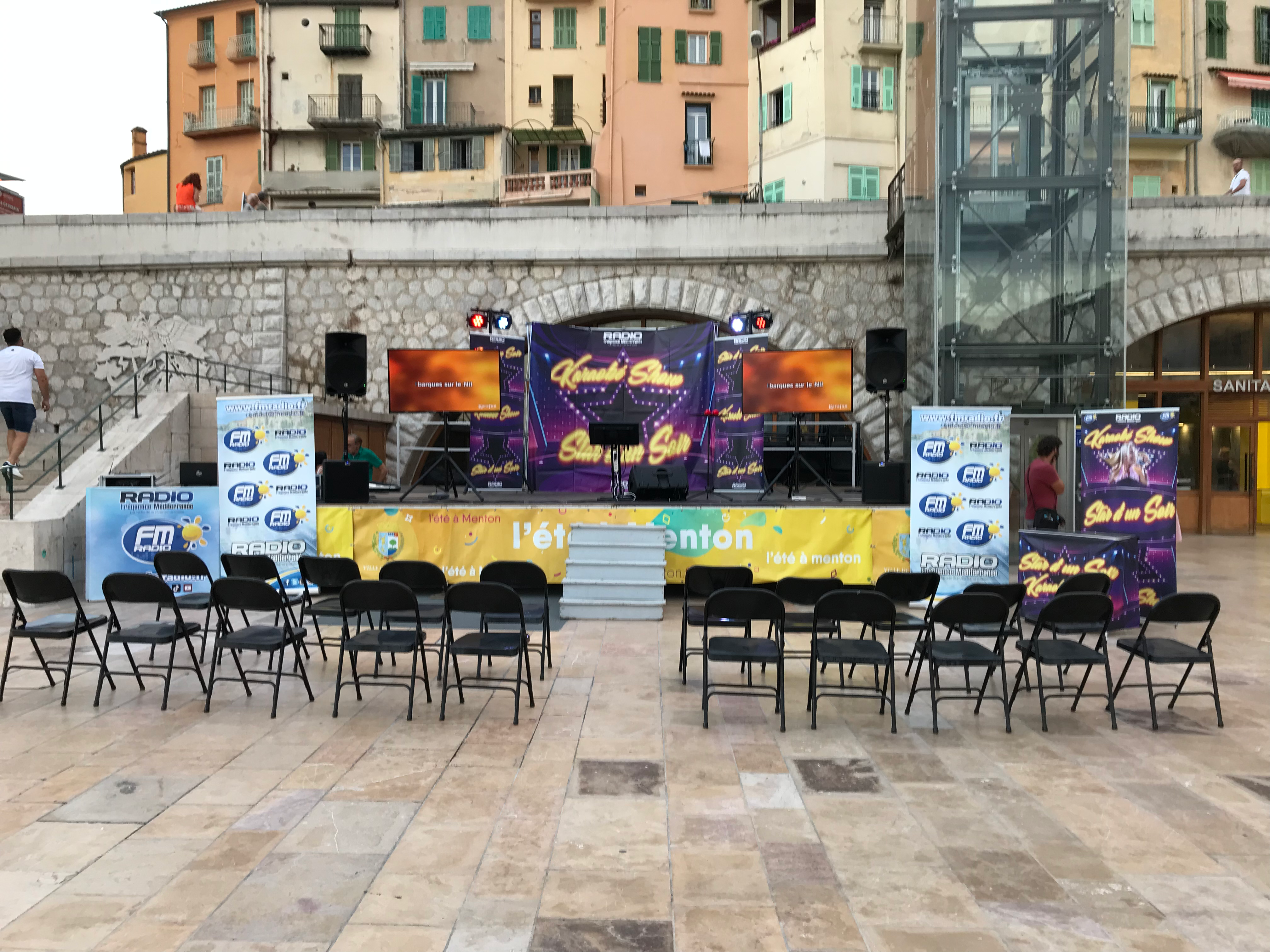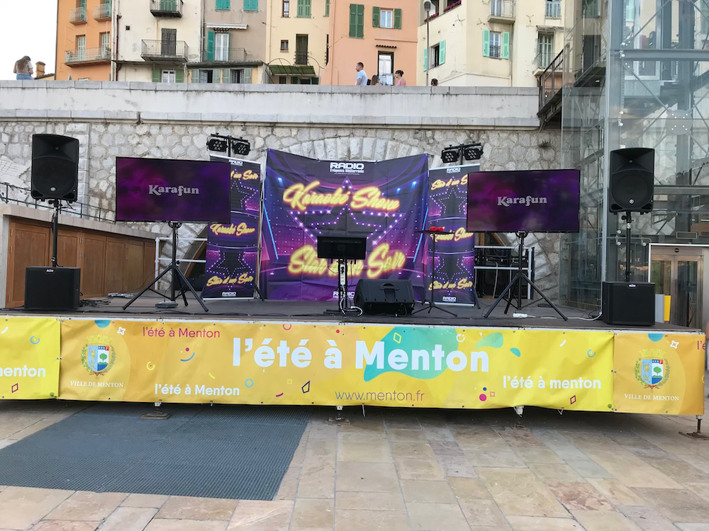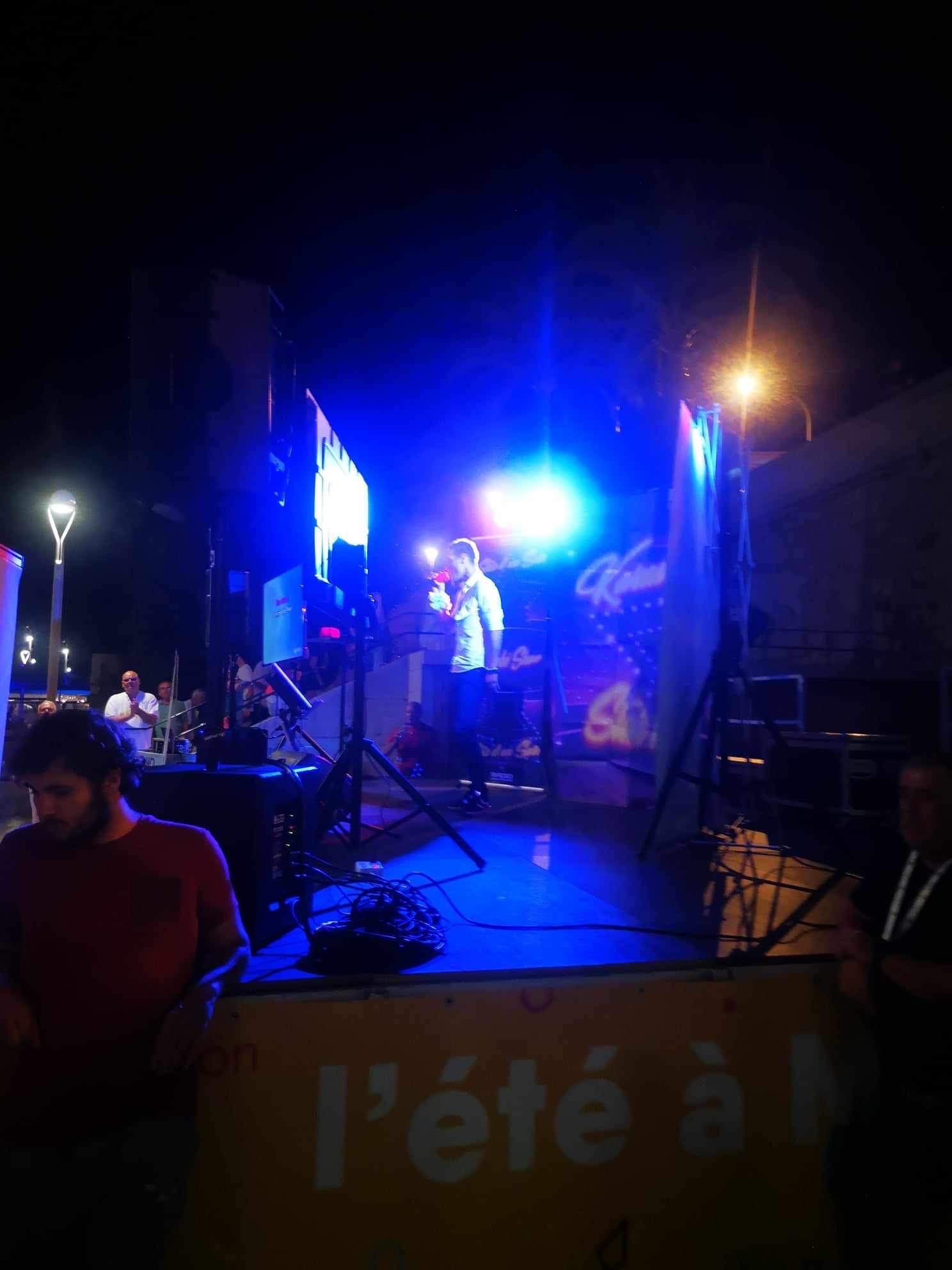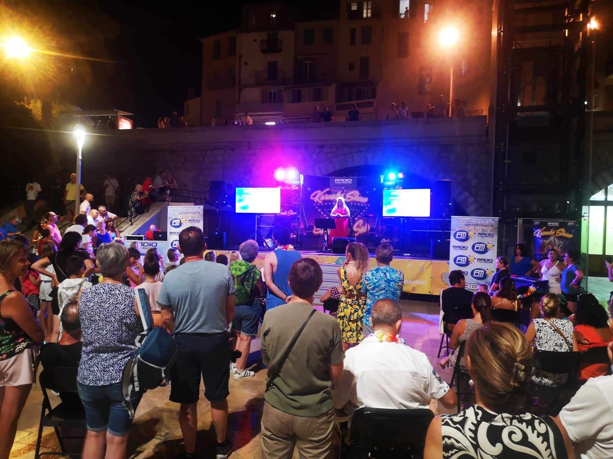 Un seul mot à retenir " REUSSITE " . La 1er version de " STAR D'UN SOIR " a été tout simplement un succès. Plus de 500 personnes au plus fort de la soirée, plus de 50 chanteurs amateurs sur scène et un concept Karaoké unique sur Menton. Merci aux membres de mon équipe qui ont su gérer l'affluence. Avec en prime distribution de colliers et de bracelets. Hier soir c'était " THE VOICE " sur l'esplanade des Sablettes. Un concept plébiscité qui en appel d'autres ??