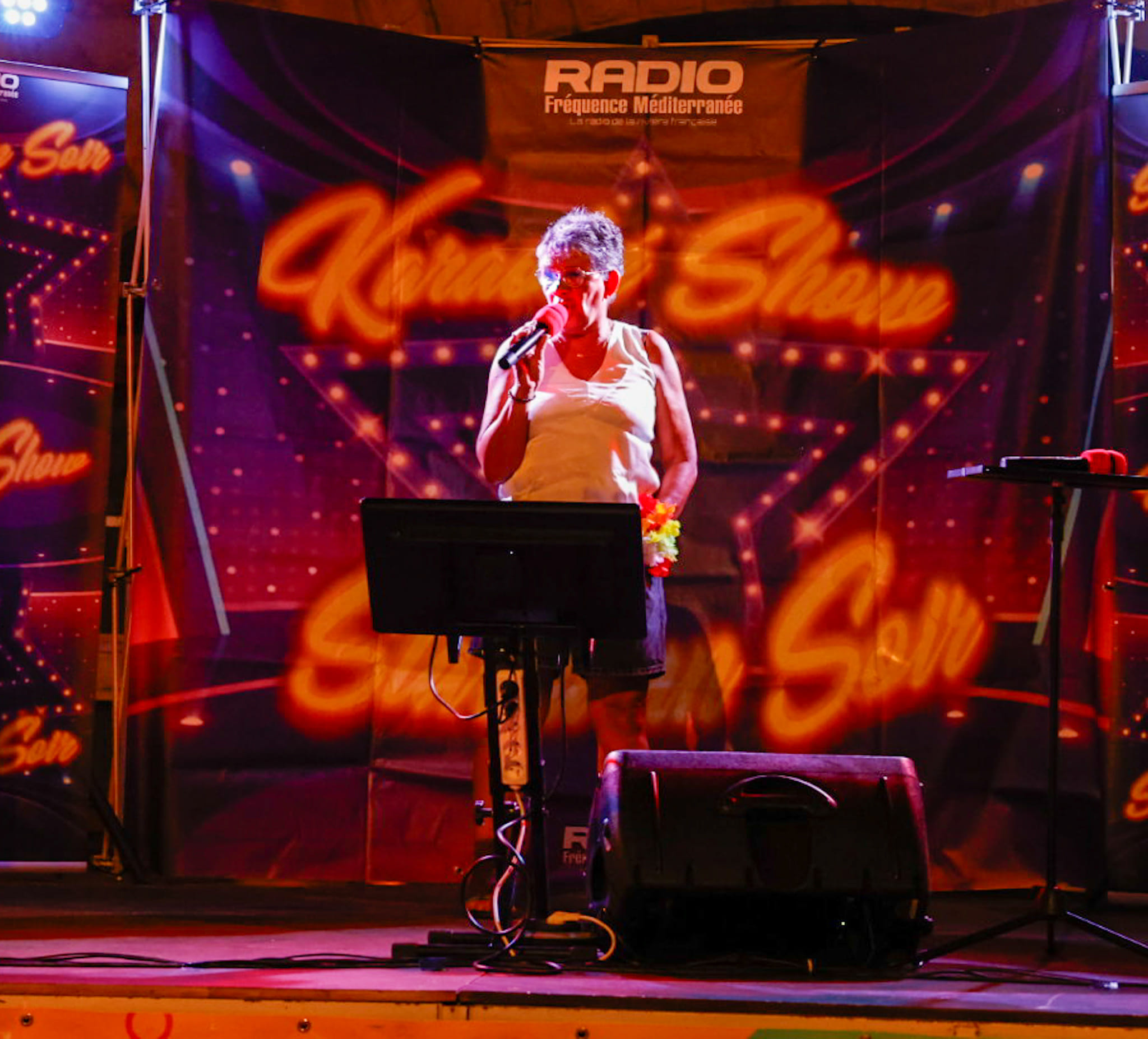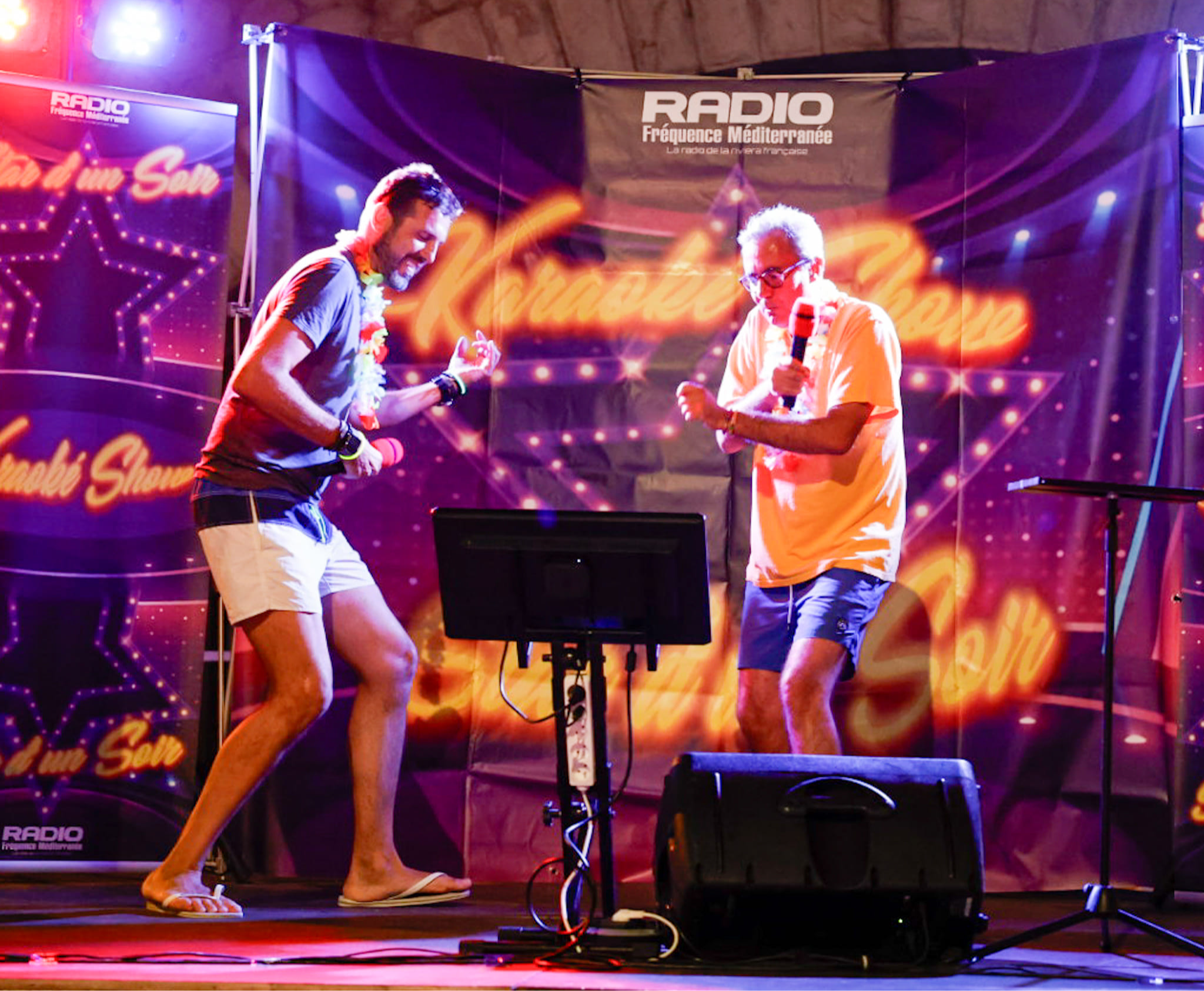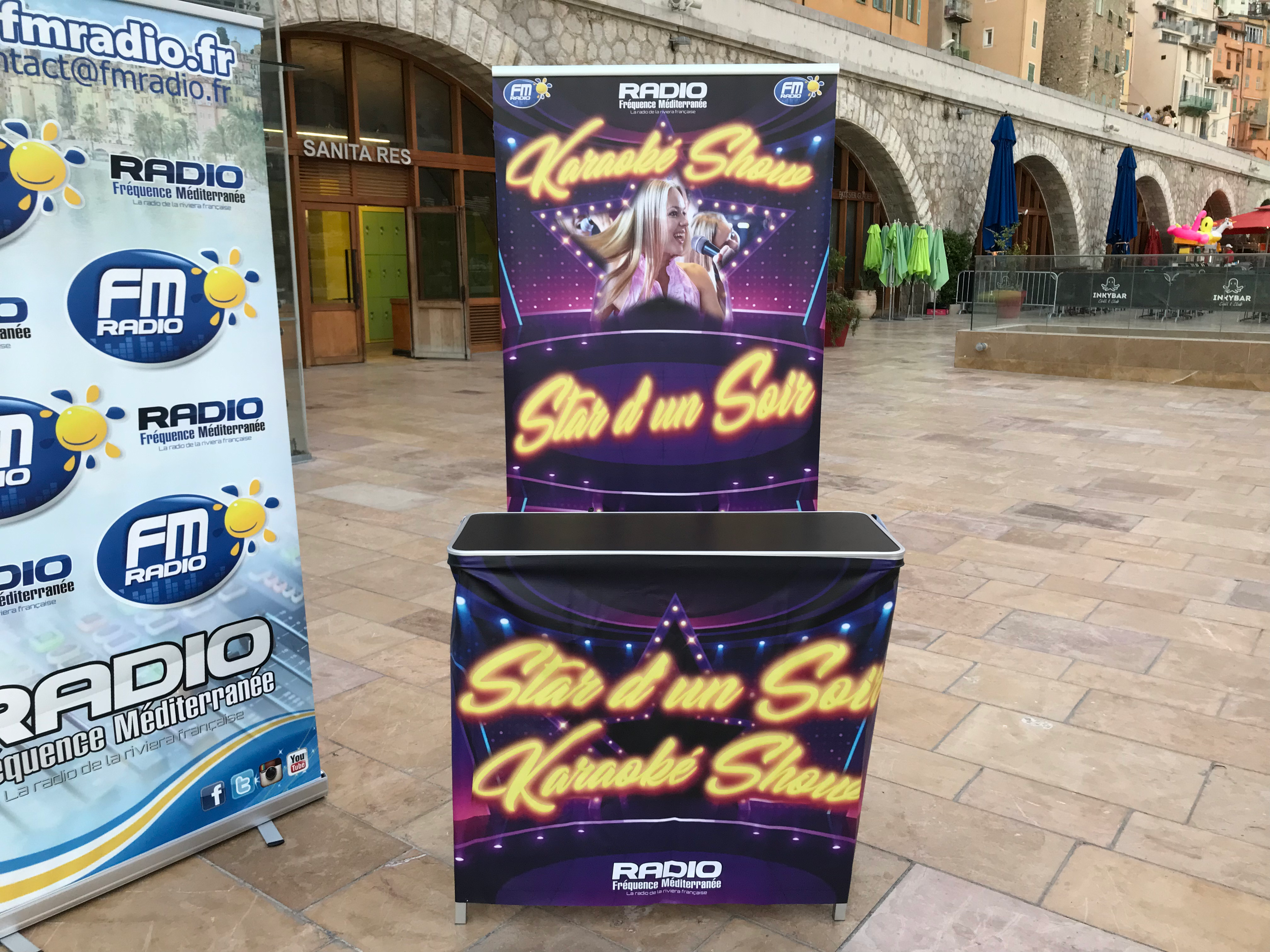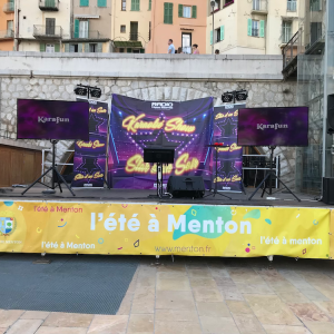 Un seul mot à retenir " REUSSITE " . La 1er version de " STAR D'UN SOIR " a été tout simplement un succès. Plus de 500 personnes au plus fort de la soirée, plus de 50 chanteurs amateurs sur scène et un concept Karaoké unique sur Menton. Merci aux membres de mon équipe qui ont su gérer l'affluence. Avec en prime distribution de colliers et de bracelets. Hier soir c'était " THE VOICE " sur l'esplanade des Sablettes. Un concept plébiscité qui en appel d'autres ??
