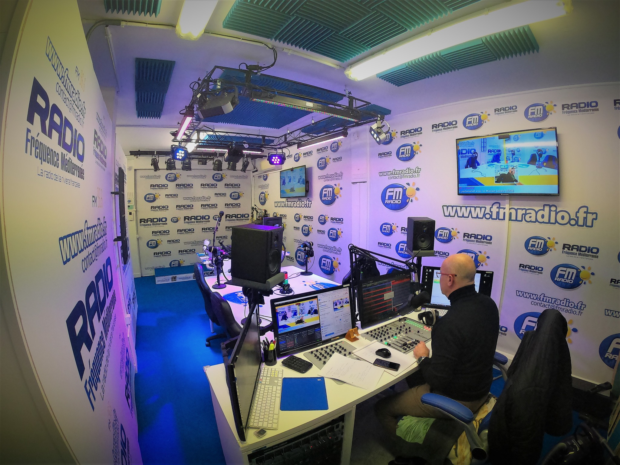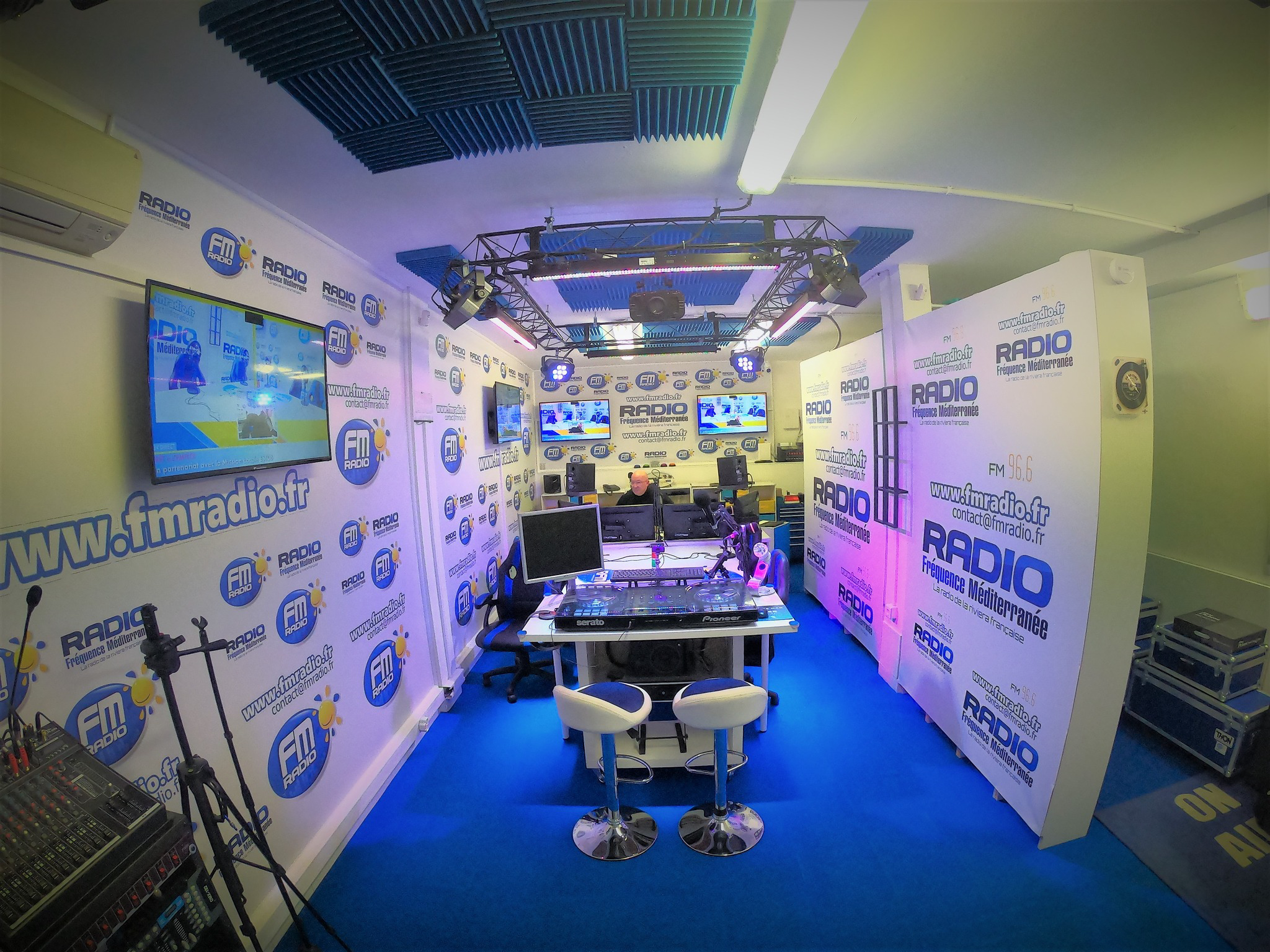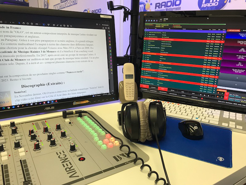 Le Studio de Radio Fréquence Méditerranée. Un studio ouvert à tous les Commerçants, Artisans, Artistes, Associations, du bassin Mentonnais.