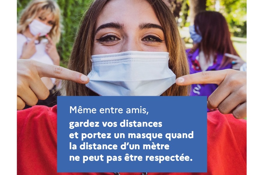 #COVID19 | Cet été, le virus circule toujours.Même entre amis, gardez vos distances et portez un masque quand la distance d'un mètre ne peut pas être respectée.#BonÉtéBonsRéflexes...