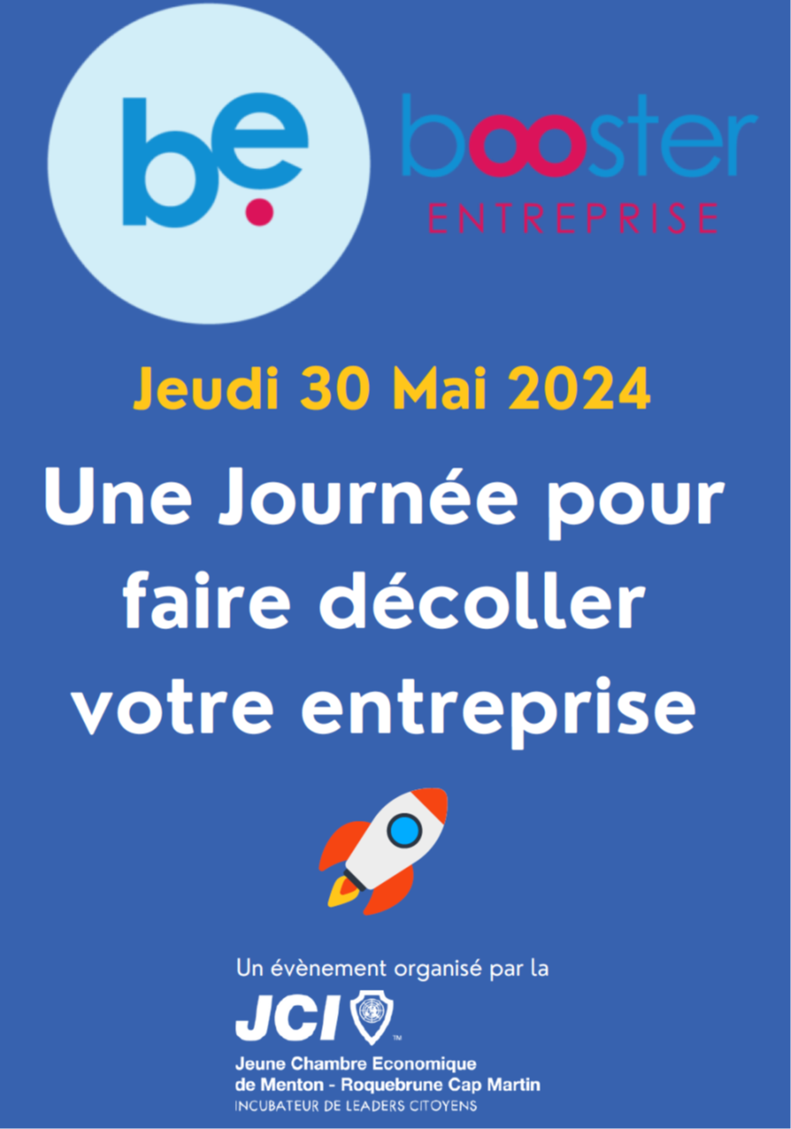La Jeune Chambre Économique (JCE) de Menton-Roquebrune-Cap-Martin, affiliée à la Jeune Chambre Économique Française (JCEF), annonce avec enthousiasme son action "Booster Entreprise", prévue le jeudi 30 mai 2024. Cette initiative, portée au niveau national, et ayant déjà fait ses preuves dans d'autres territoires, vise à offrir une journée complète de formation aux entrepreneurs désireux de renforcer leurs compétences et de propulser leur entreprise vers de nouveaux horizons.