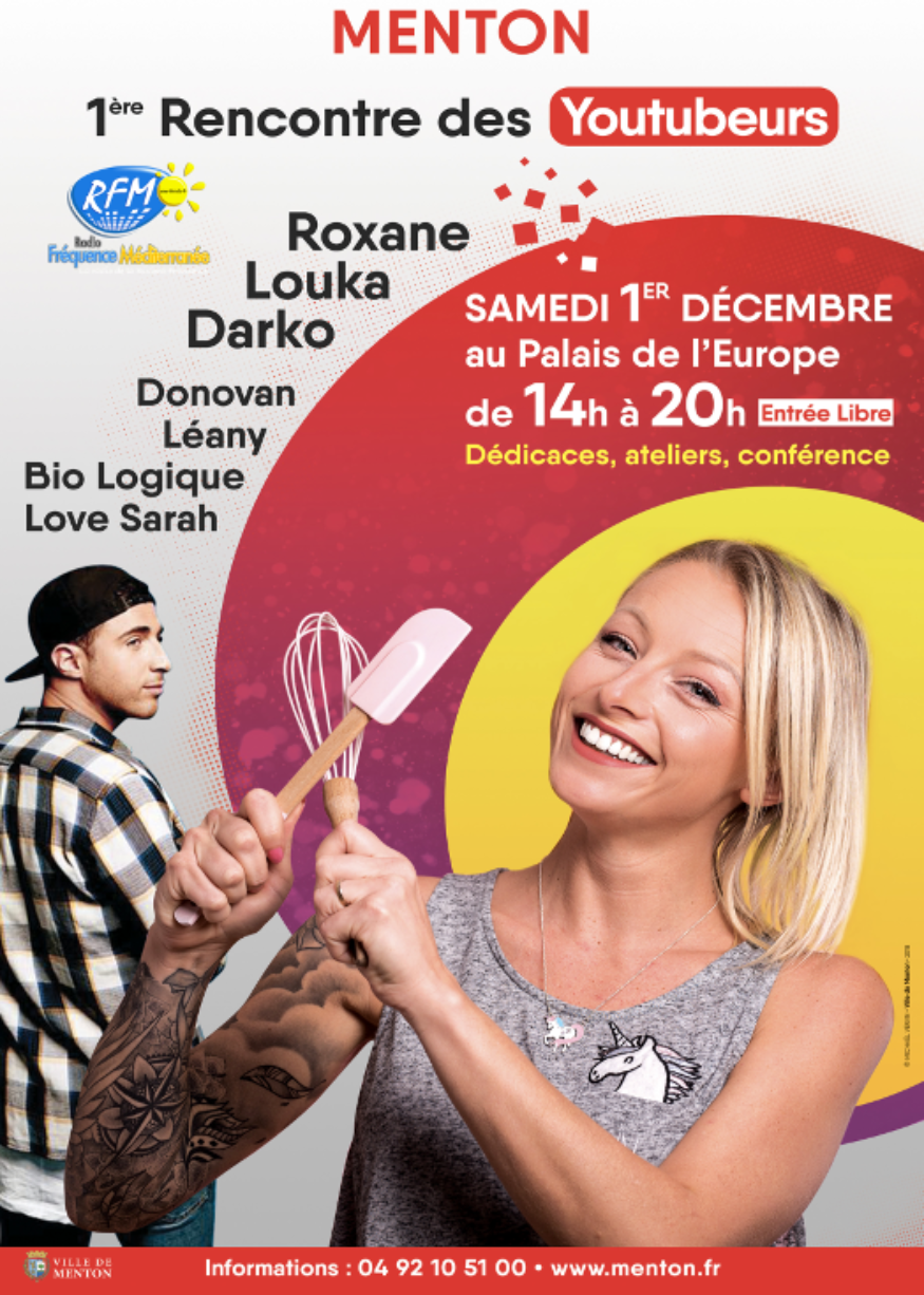 Roxane, Louka, Darko, Léany, Bio Logique, Love Sarah, Donovan… Voici les têtes d’affiche De la 1ère Rencontre des Youtubeurs qui se dérouleront le samedi 1erdécembre au palais de l’Europe.